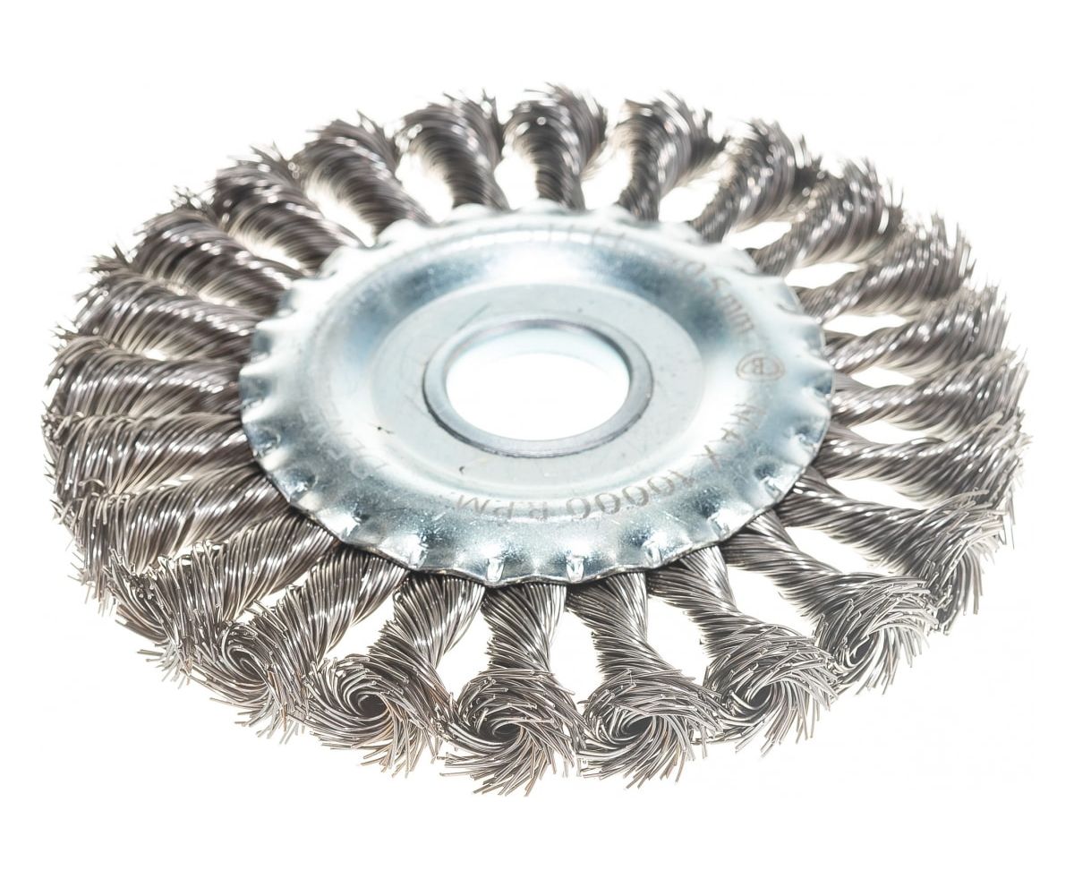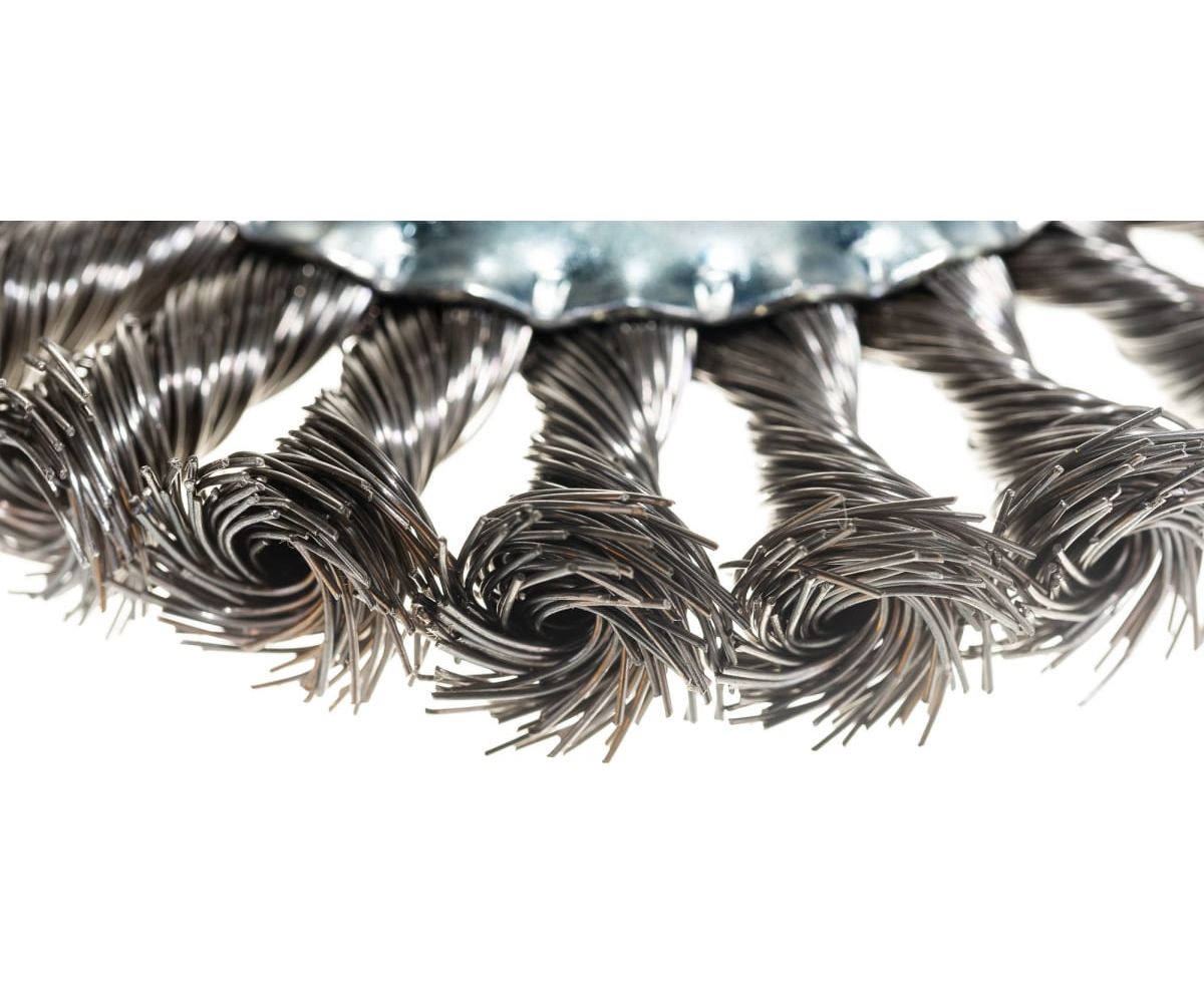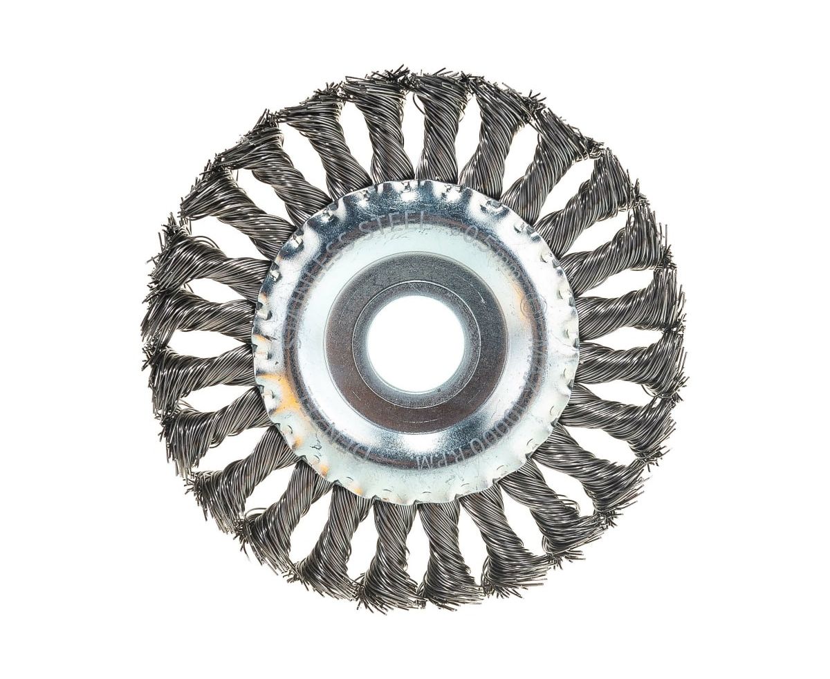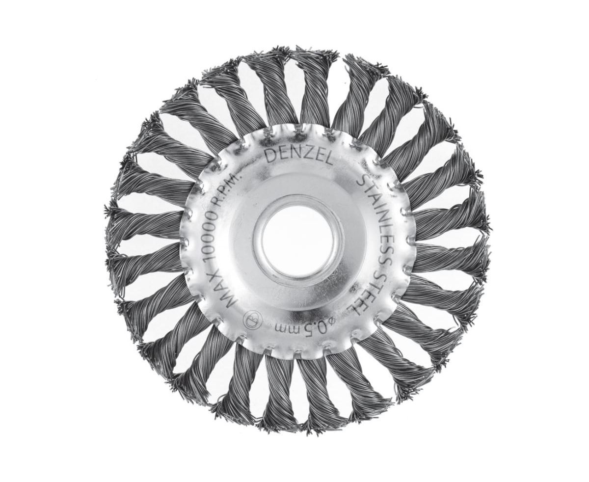 Щетка для УШМ Denzel 746323 125мм, Плоская, крученая нержавеющая проволока 0,5мм, посадка 22,2мм