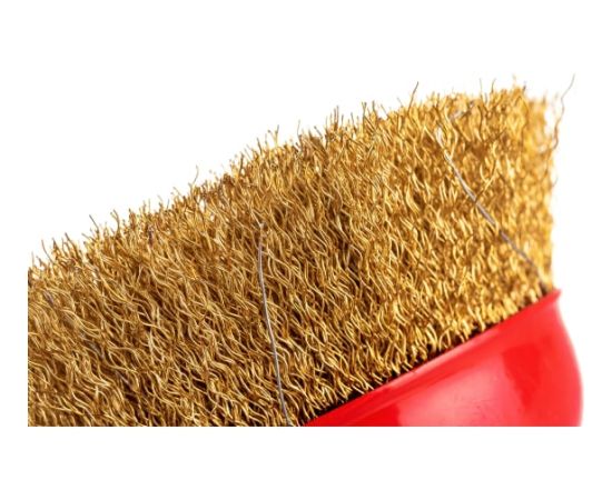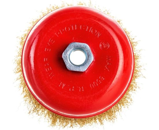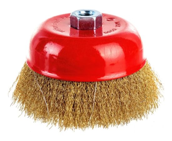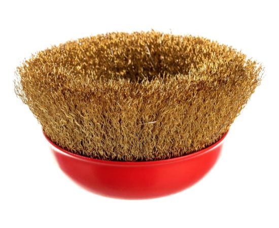 Щётка для УШМ Elitech 1820.074100, диаметр 125 мм, оптом и в розницу с доставкой по всей территории РФ. Щётки такого типа используются совместно с угловыми шлифовальными машинами для зачистки металлических поверхностей от ржавчины, грязи, старой краски, также щётки такого типа можно использовать для очистки и обработки древесины. Рабочая часть изготовлена из латунированной проволоки толщиной 0.3 мм, резьба посадочной гайки М14.