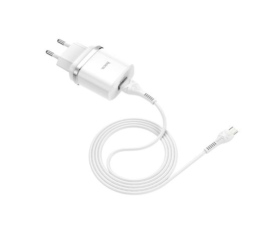 Сетевое зарядное устройство 1USB 3A QC3.0 быстрая зарядка с дата-кабелем micro USB Hoco C12Q 1м (White)