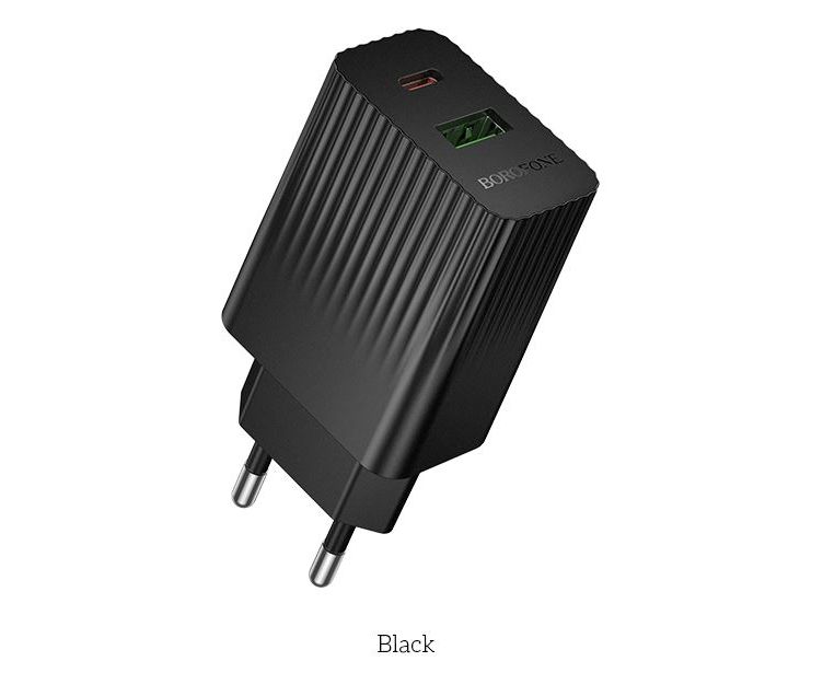 Сетевое зарядное устройство BOROFONE BAS76A/ СЗУ/ PD + QC 3.0/ 2 USB: Type-C 30W + Type-A 18W/ Выход общий: 15W/ Черный