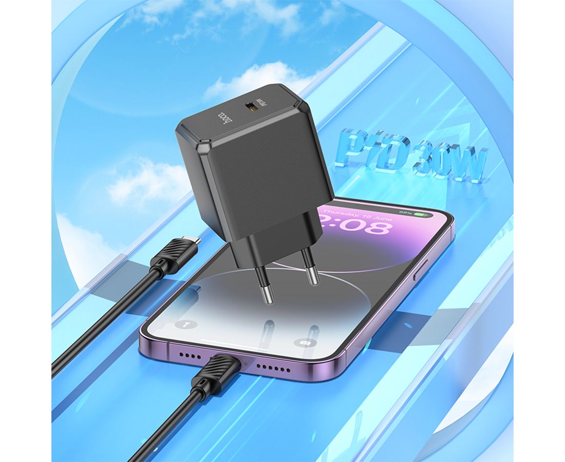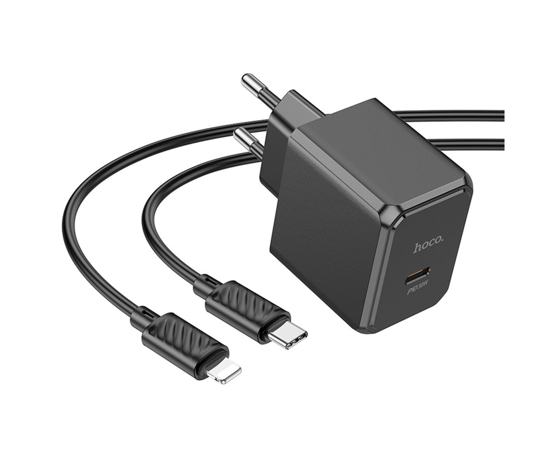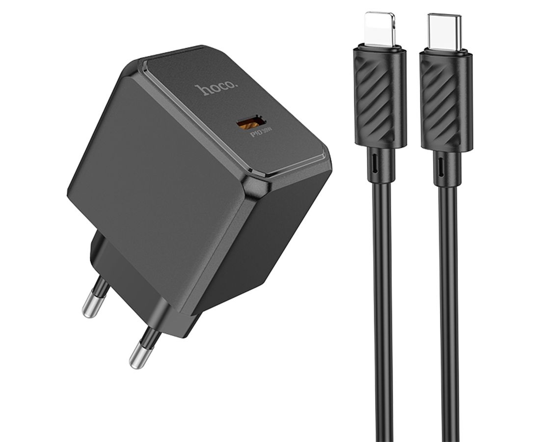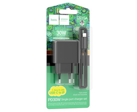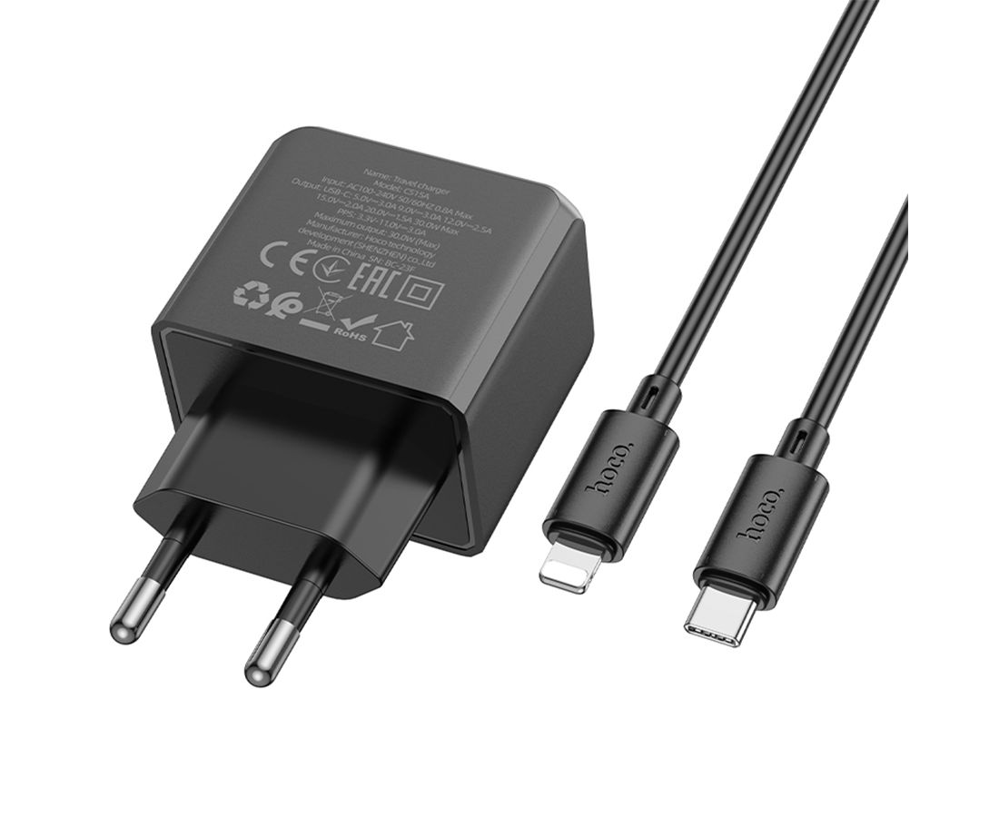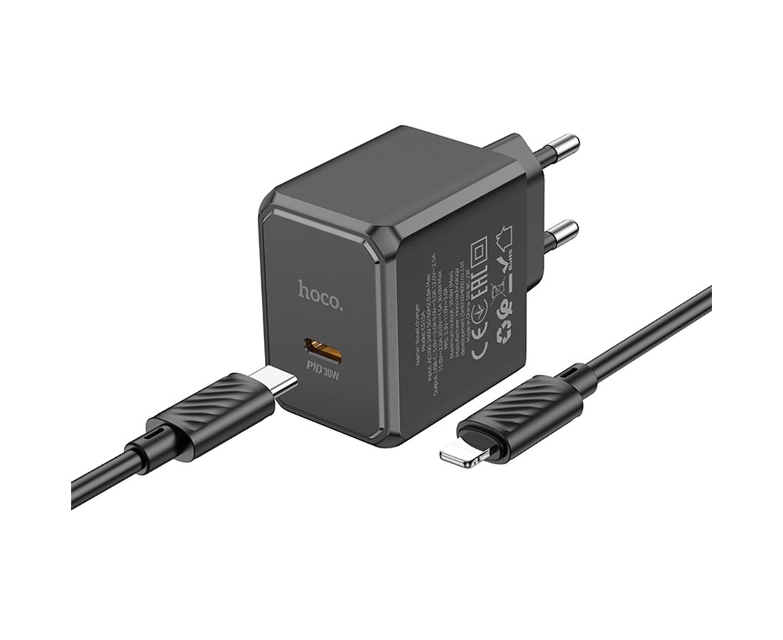 Сетевое зарядное устройство HOCO CS15A Ocean 1xUSB-C с Кабелем Type-C - Lightning, 30W, черный