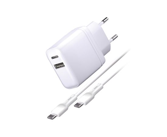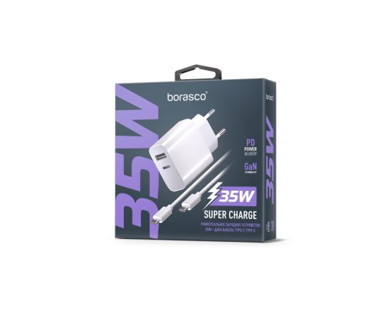 Сетевое зарядное устройство Super Charge PD+QC, GAN, 35W + Дата-кабель Type-C - Type-C, 3А, 1м, белое