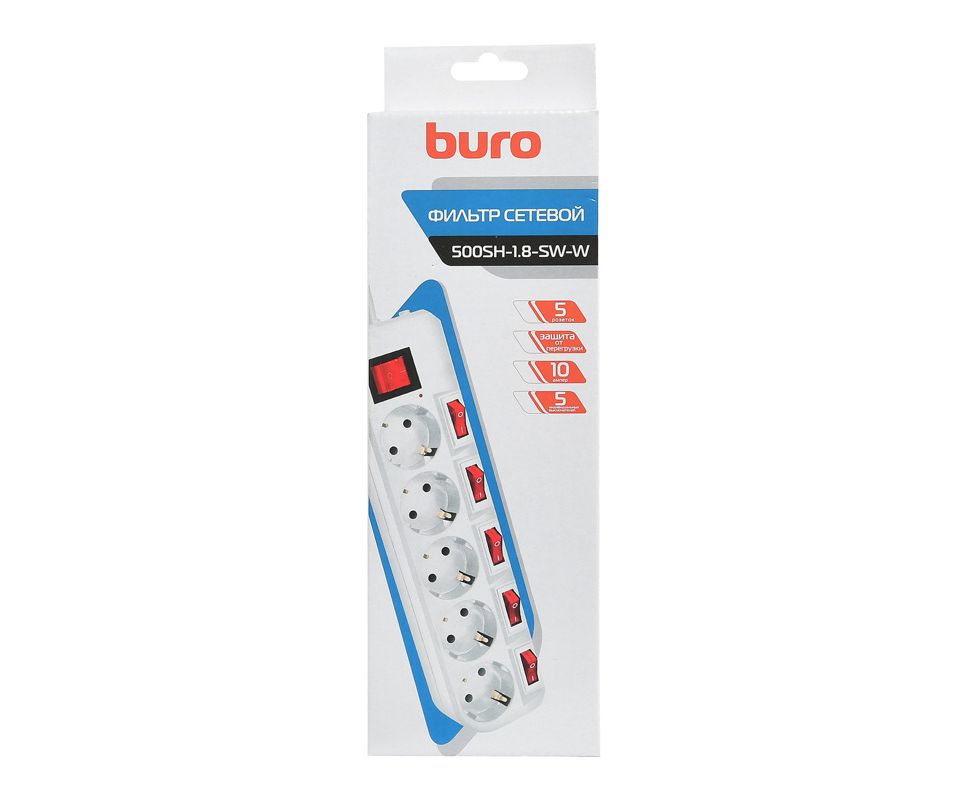 Сетевой фильтр Buro 500SH-1.8-SW-W 1.8м (5 розеток) белый