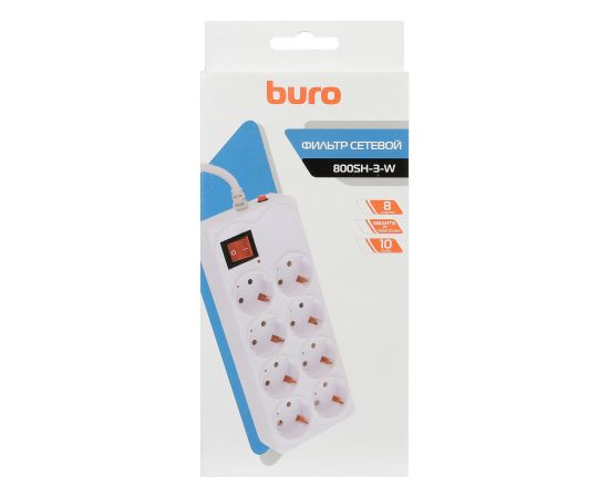 Сетевой фильтр Buro 800SH-3-W 3м (8 розеток) белый