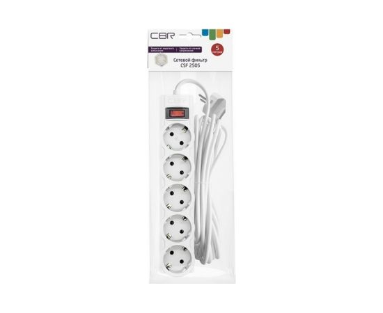 Сетевой фильтр CBR CSF 2505-5.0 White CB, 5 евророзеток, длина кабеля 5 метров, белый (коробка)