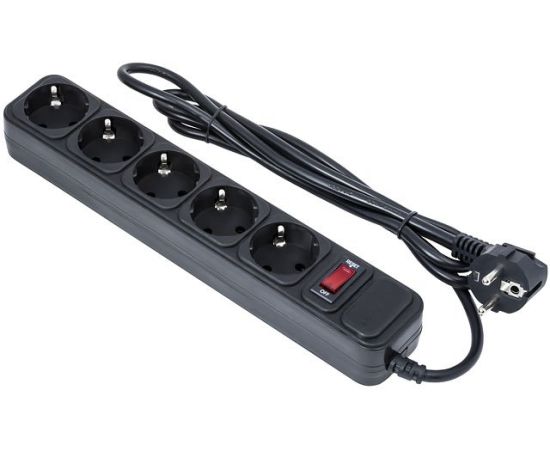 сетевой фильтр, 5 розеток, 1.5 м, чёрный