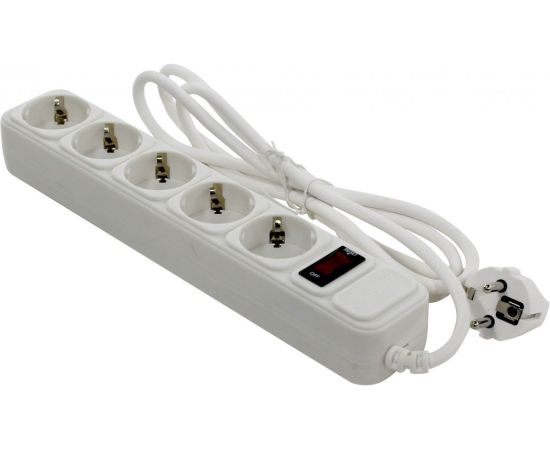 сетевой фильтр на 5 евророзеток, суммарная мощность нагрузки: 2.2 кВт, максимальный ток нагрузки: 10A, кабель 1.8м, белый