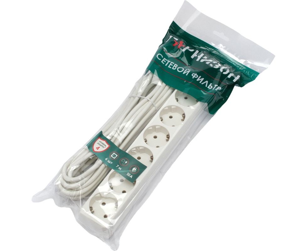 Сетевой фильтр Гарнизон ECL-6-W-7 6р, 10А, 7м белый