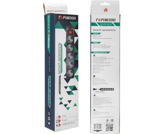 Сетевой фильтр Гарнизон EHLB-3 10А 5м 5 розеток чёрный