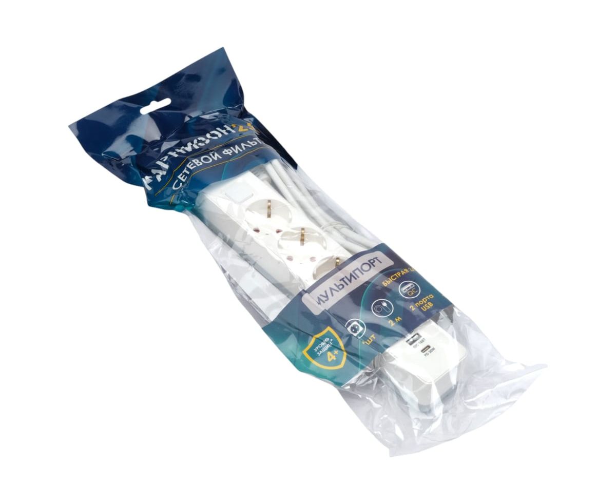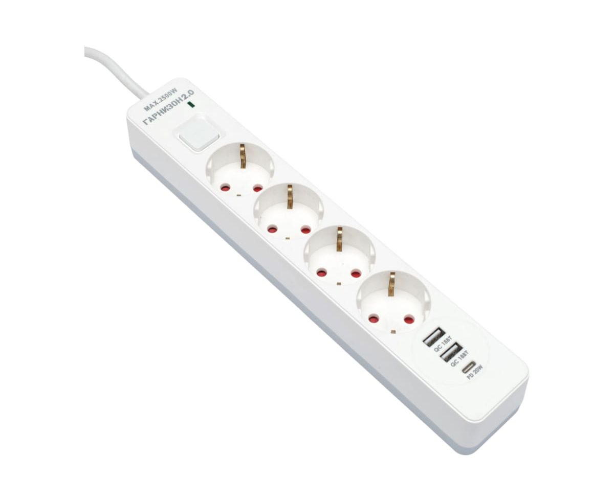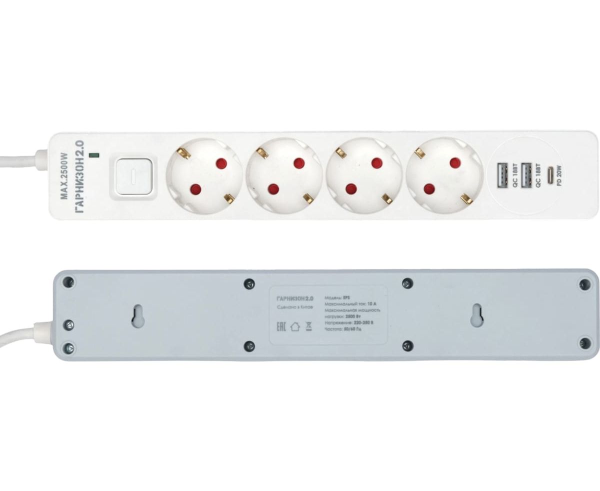 Сетевой фильтр Гарнизон EPS-OP-4-CU2-W-2 2.0 белый (21449)