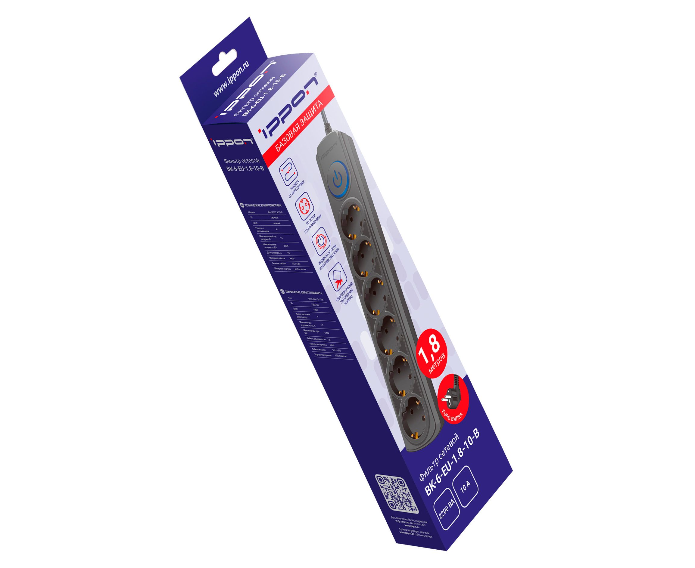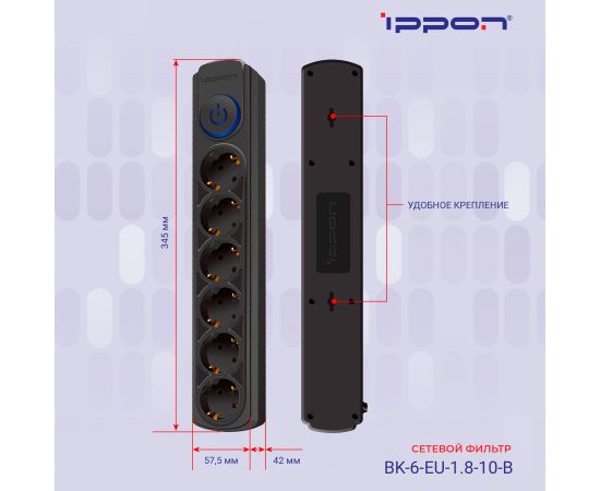 Сетевой фильтр Ippon BK-6-EU-1.8-10-B (1.8м 6 розеток черный)