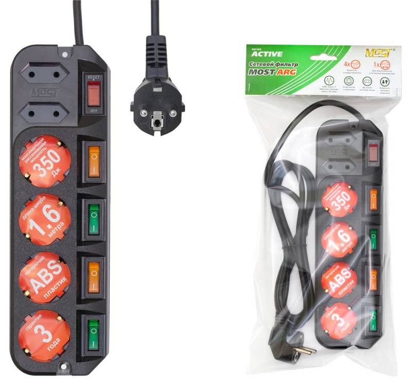 Сетевой фильтр Most ARG 1.6м (6 розеток) черный