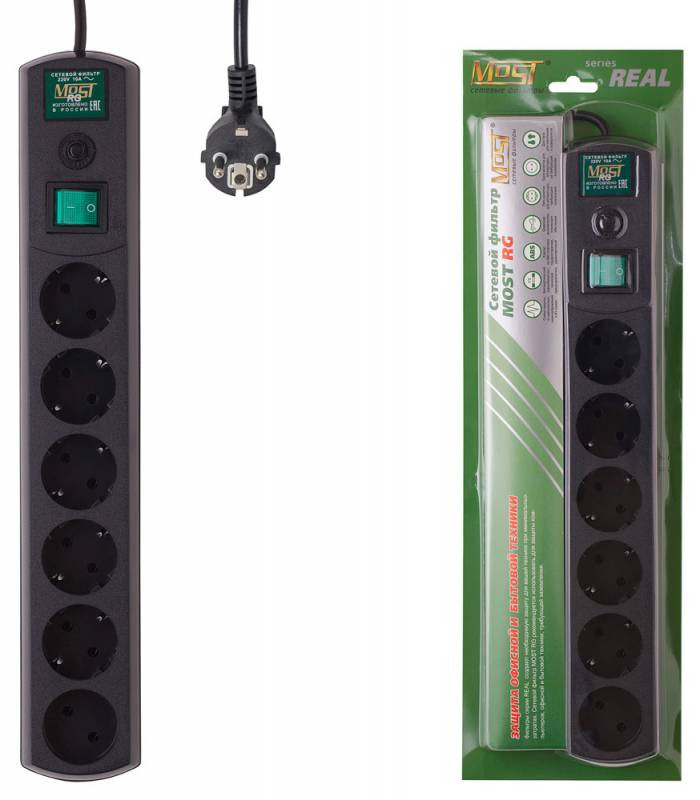 Сетевой фильтр Most RG 2м (6 розеток) черный