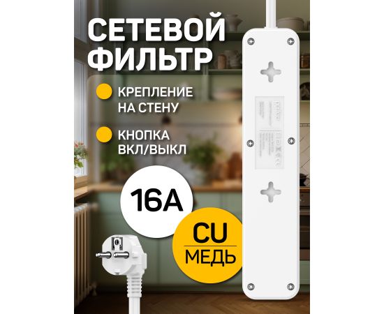 Мощность: 3500 Вт (16А) — это игровая консоль + ТВ + колонки, или ноутбук + лампа + монитор, даже фен или чайник.