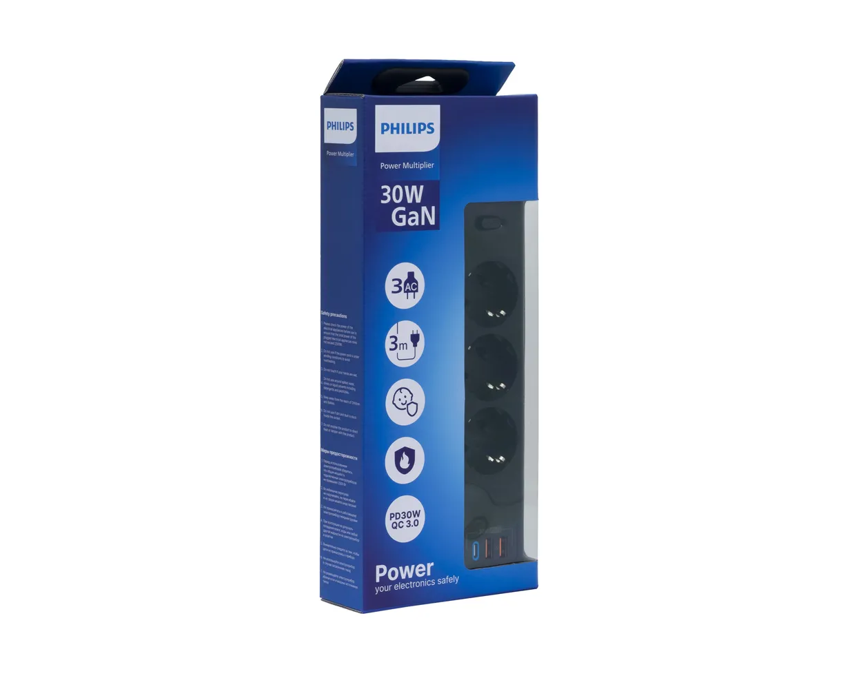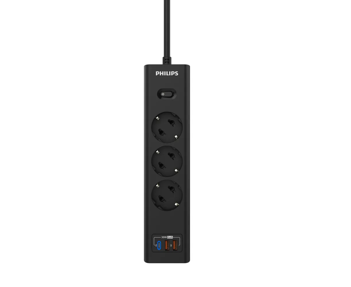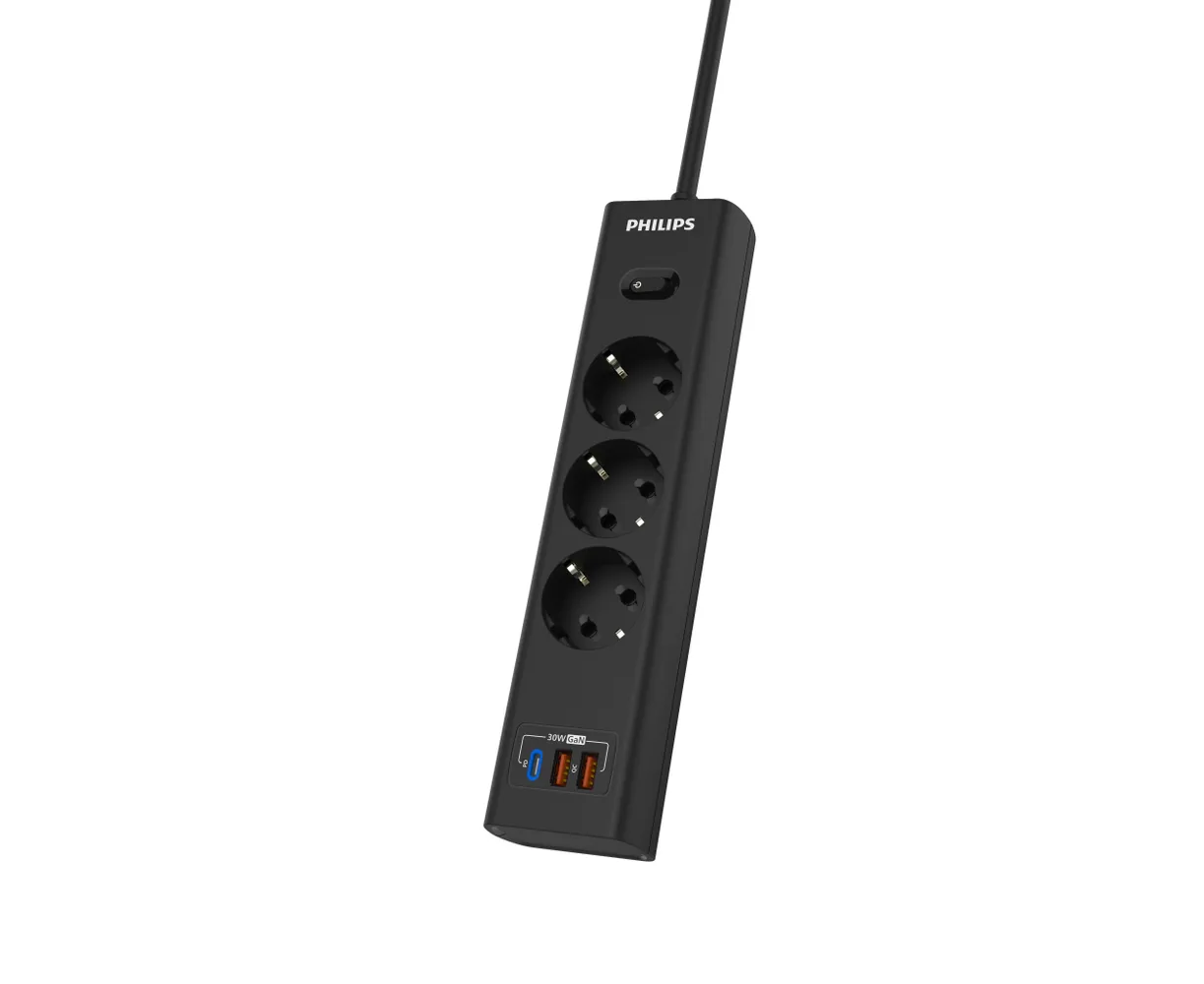 Сетевой фильтр удлинитель Philips CHP8236BB/51 представляет собой удобное устройство, которое позволяет подключать несколько устройств к одной розетке. Этот пилот удлинитель оснащен 3 розетками и 2 USB-А, а также одним портом Type-C, что обеспечивает возможность подключения различных электронных устройств, можно использовать как фильтр для компьютера, а также хорошо подойдет как удлинитель для гирлянды, поэтому он является многофункциональным. Длина разветвителя электрического составляет 3 метра, что позволяет свободно располагать подключенные устройства в нужном месте. Важным преимуществом розетки с выключателем является наличие заземления, которое обеспечивает безопасность и защиту от перегрузок. Тройник с usb 3.0 обладает многофункциональностью, позволяя подключать не только электрические приборы, но и заряжать устройства с помощью USB-портов. Сетевой фильтр Philips обладает передовой технологией быстрой зарядки QC 3.0 - Смартфон непрерывно посылает зарядному устройству информацию о состоянии аккумулятора. На основании этой информации блок питания регулирует выходную мощность, изменяя напряжение и силу тока. Также, благодаря новейшей технологии GaN, этот удлинитель предлагает высокую мощность, занимая при этом минимум места. Сетевые зарядные устройства, в которых используется технология GaN (нитрид галлия), потребляют меньше электрических компонентов и обладают лучшей теплоотдачей. Черный цвет разветвителя с type c придает ему стильный и современный вид, а прочный корпус обеспечивает долговечность и надежность использования. Этот удлинитель силовой идеально подходит для использования дома или в офисе, где требуется подключение и зарядка сразу нескольких устройств. Идеально подойдет для использования дома, гаража, склада, офиса.