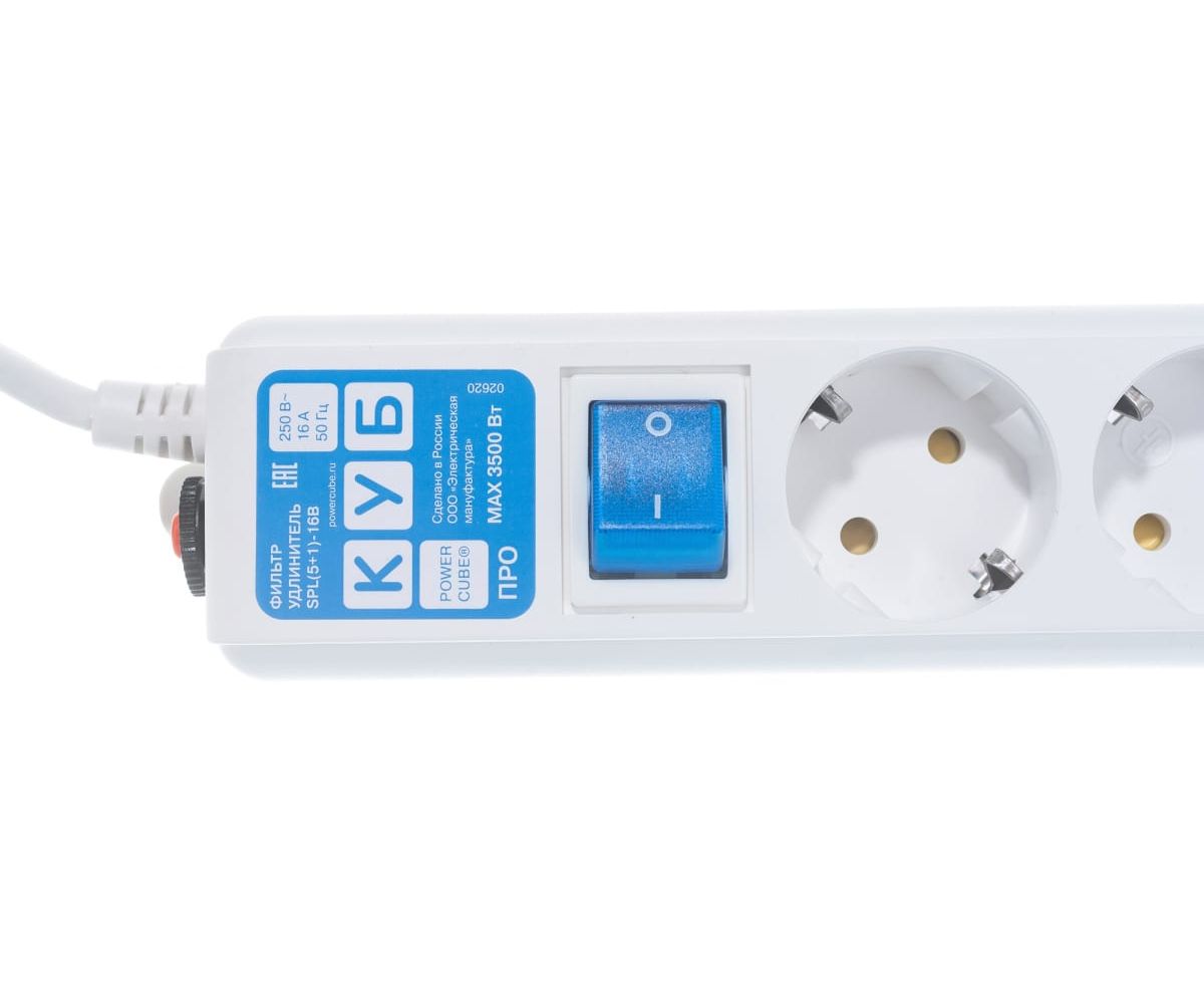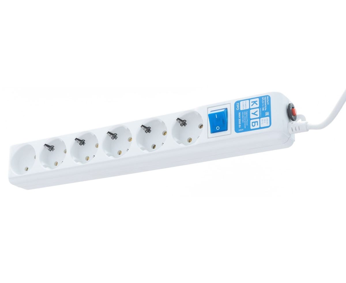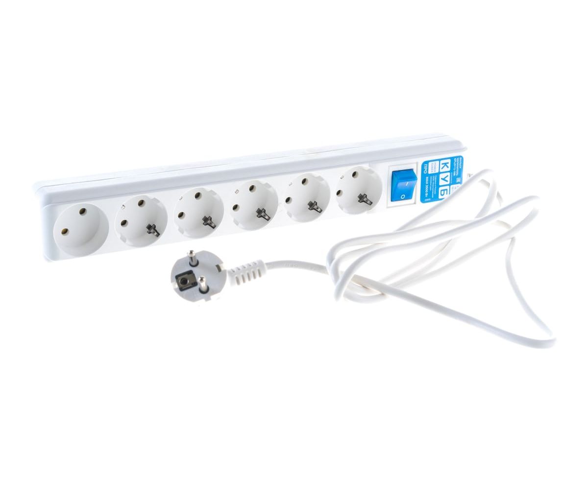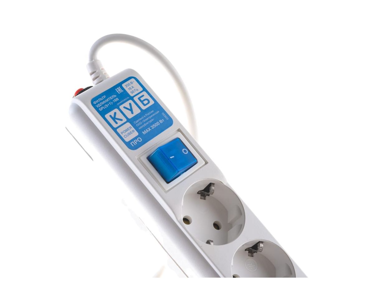 Сетевой фильтр Power Cube Pro (SPL(5+1)-16B-P-1.9м) 1,9 м, 6 розеток, белый