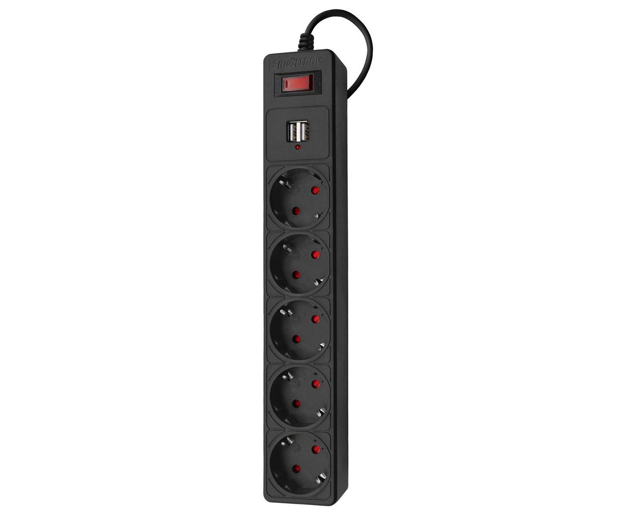 Сетевой фильтр SmartBuy SBSP-18U-K с USB, 10А, 2 200 Вт, 5 розеток, длина 1,8м, черный