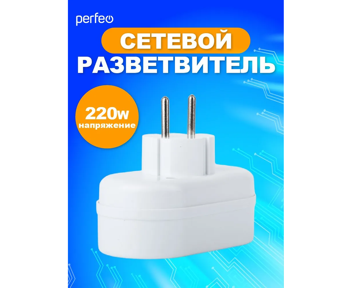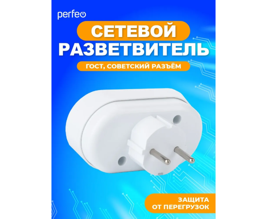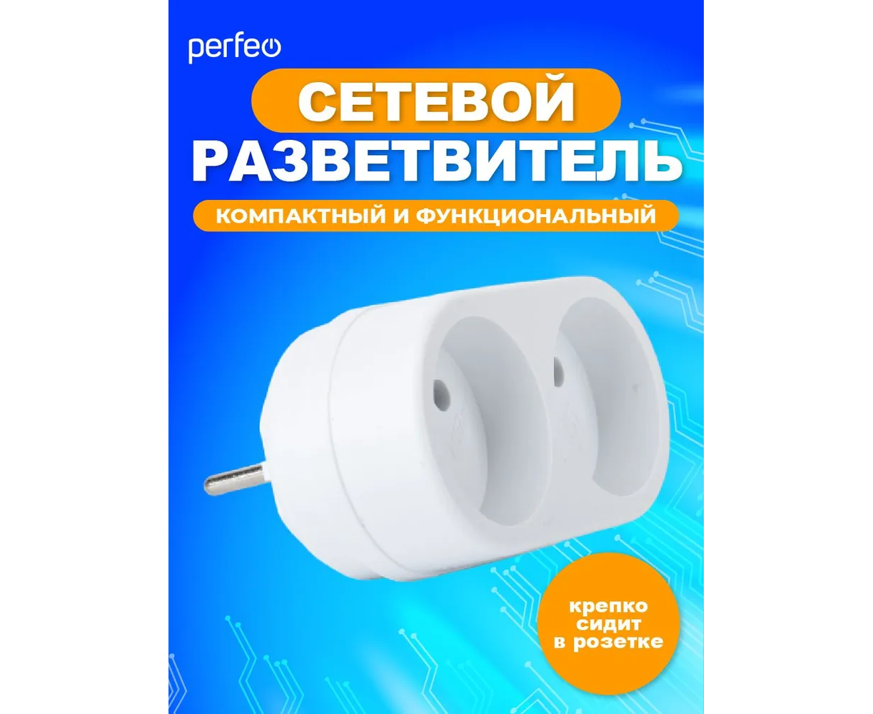 Сетевой разветвитель Perfeo "RU POWER'' 2 гнезда, 6А, без заземления, (2Т), белый