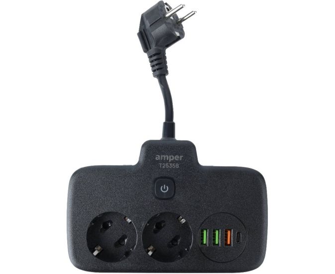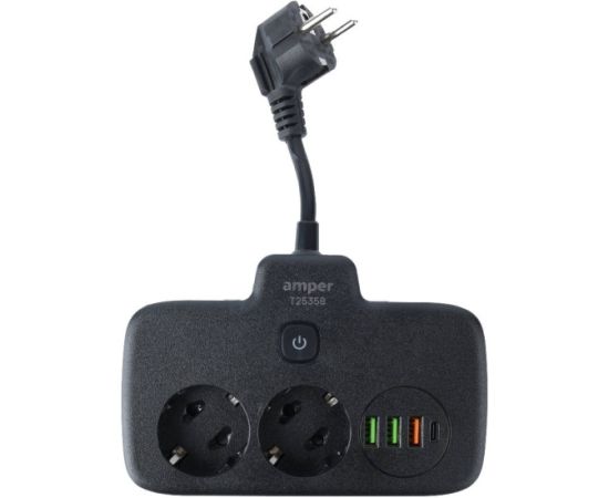 Сетевой удлинитель Amper T2535B 0,2м, 2 розетки черный