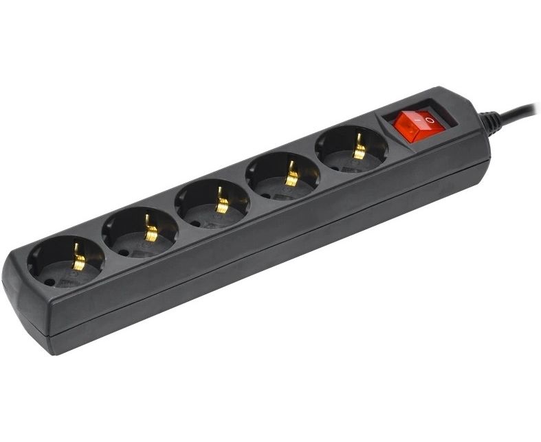 Сетевой удлинитель IEK У05В (WYP10-10-05-03-ZK-K02-G) 3м (5 розеток) черный (пакет ПЭ)