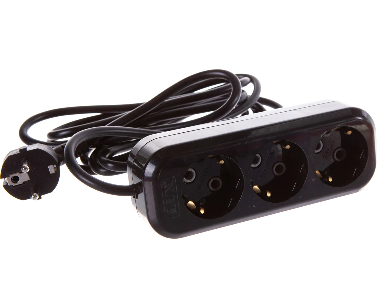 Технические характеристики LUX У3-Е-03 3розет., с/з, 3м 250В 16А, черный 4606400418979