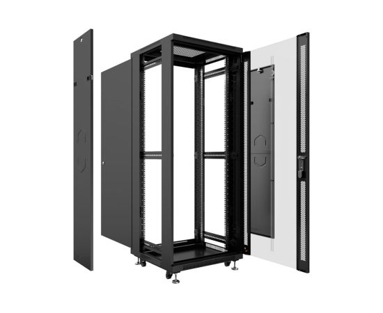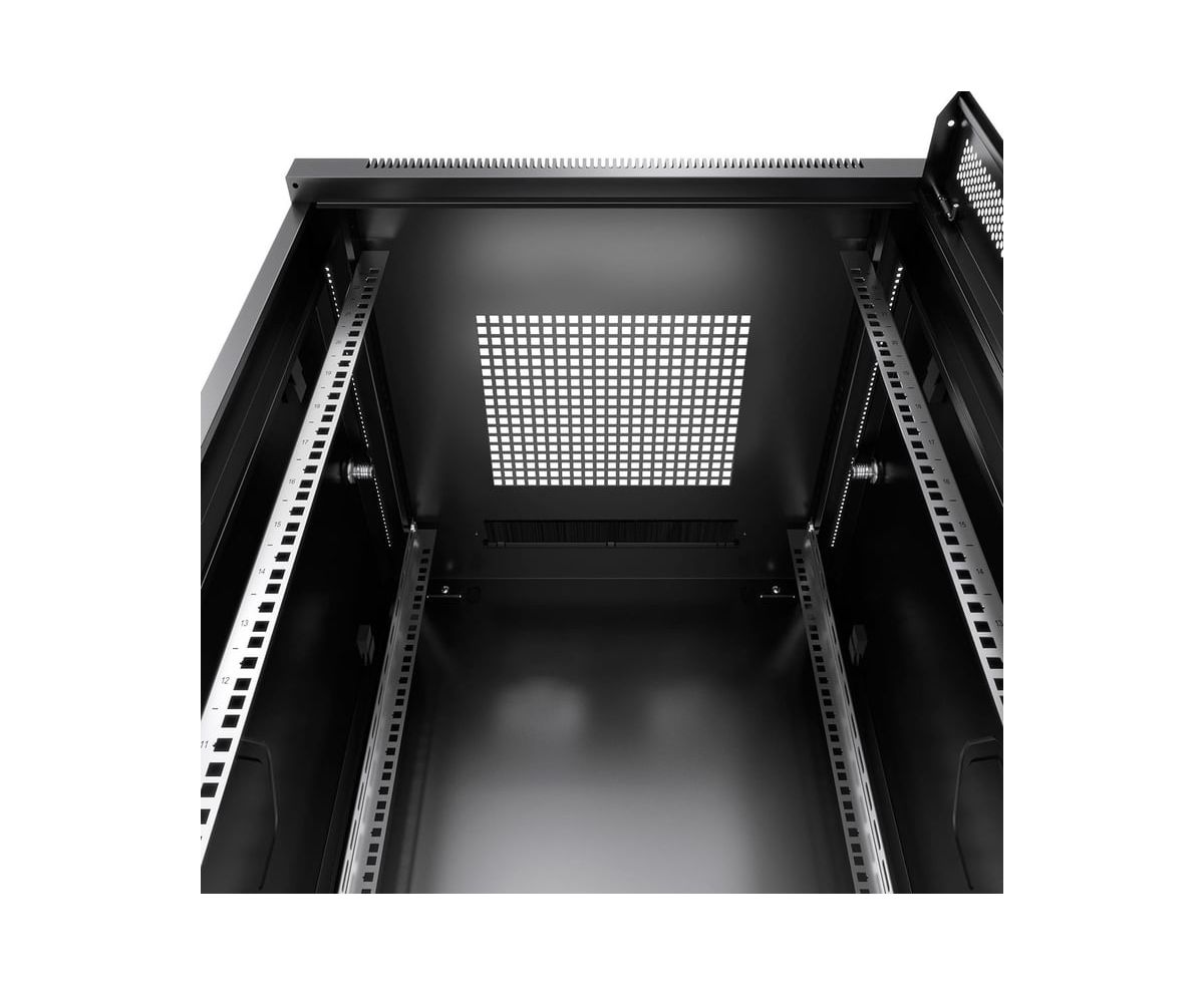 Шкаф коммутационный CABEUS SH-05C-12U60/60-BK напольный, стеклянная передняя дверь, 12U, 600x730x600 мм