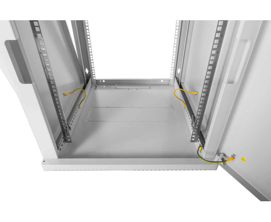 - Задняя часть корпуса шкафа имеет юнитовую перфорацию, что позволяет производить монтаж оборудования и аксессуаров имеющих четыре точки крепления. Также возможна установка второй пары вертикальных направляющих.