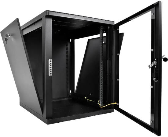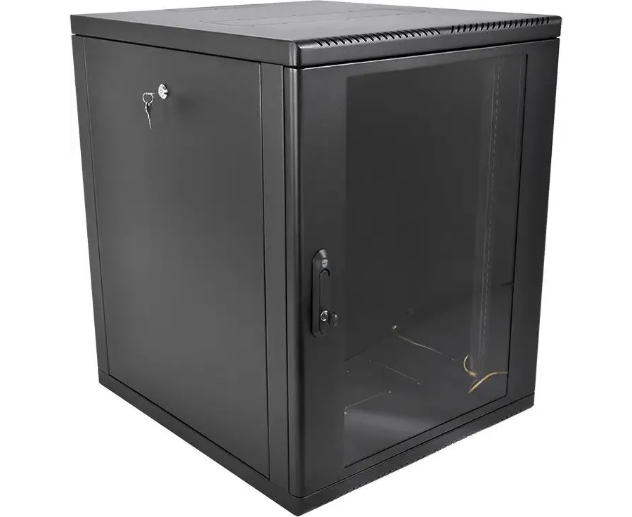 Шкаф коммутационный ЦМО ШРН-М-12.500-9005 настенный 12U 600x520мм пер.дв.стекл 130кг черный 456мм 21.6кг 180град. 610мм