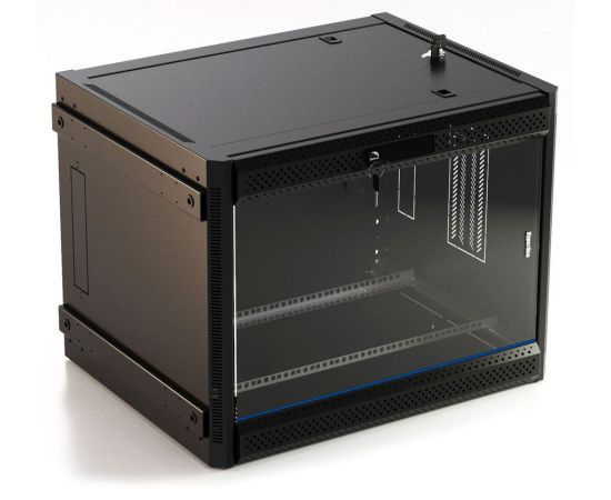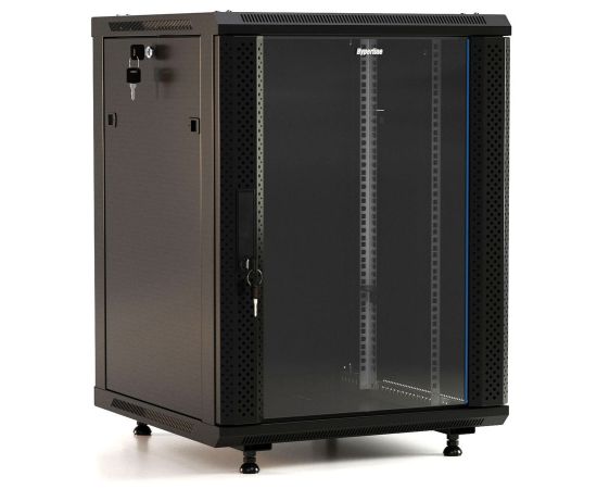 Шкаф коммутационный Hyperline TWB-FC-1866-GP-RAL9004 настенный 18U 600x600мм пер.дв.стекл 60кг черный