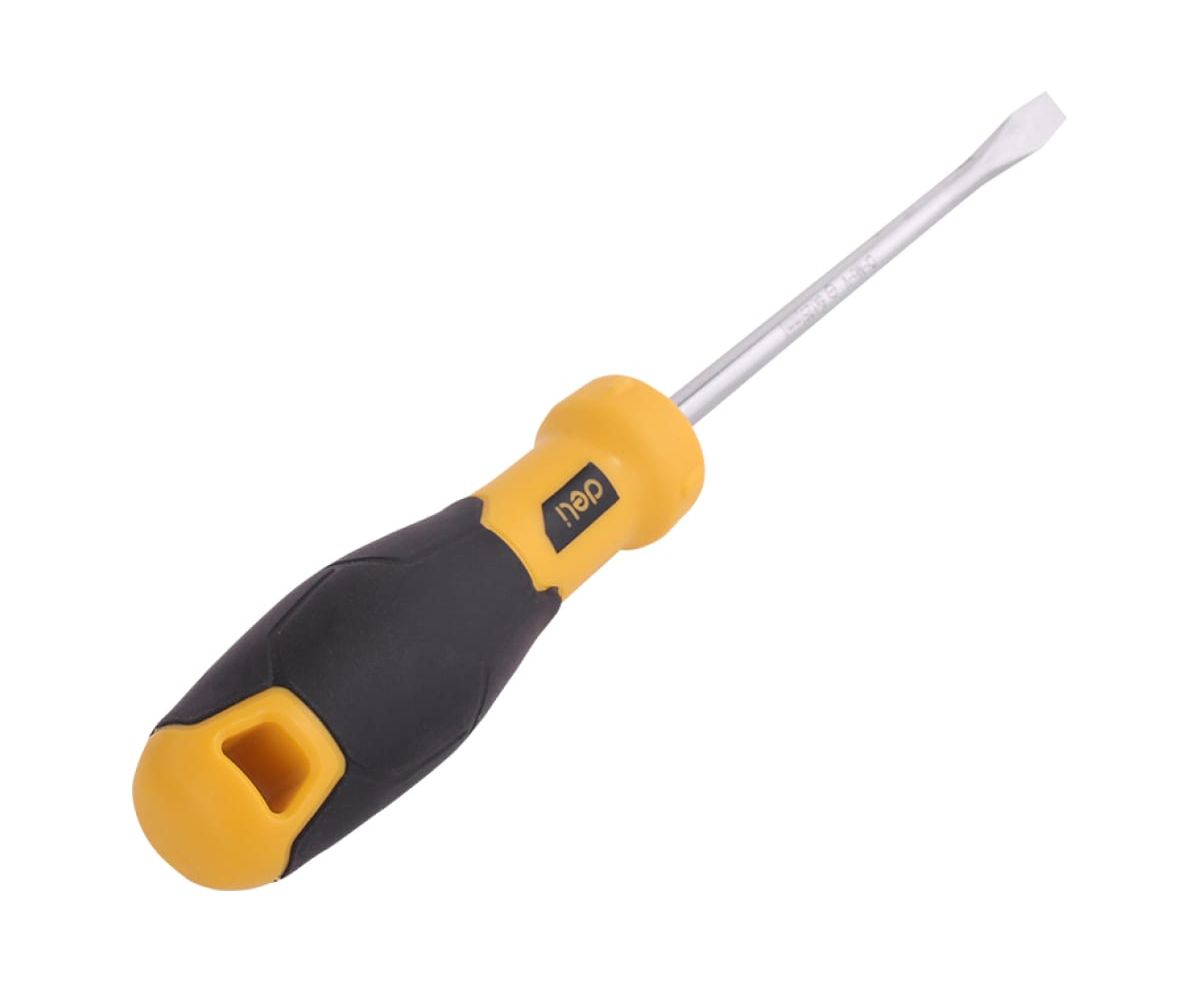 Шлицевая отвертка Deli DL6361501 6х150мм, материал: CR-V, двухкомпонентная ручка, хромированная