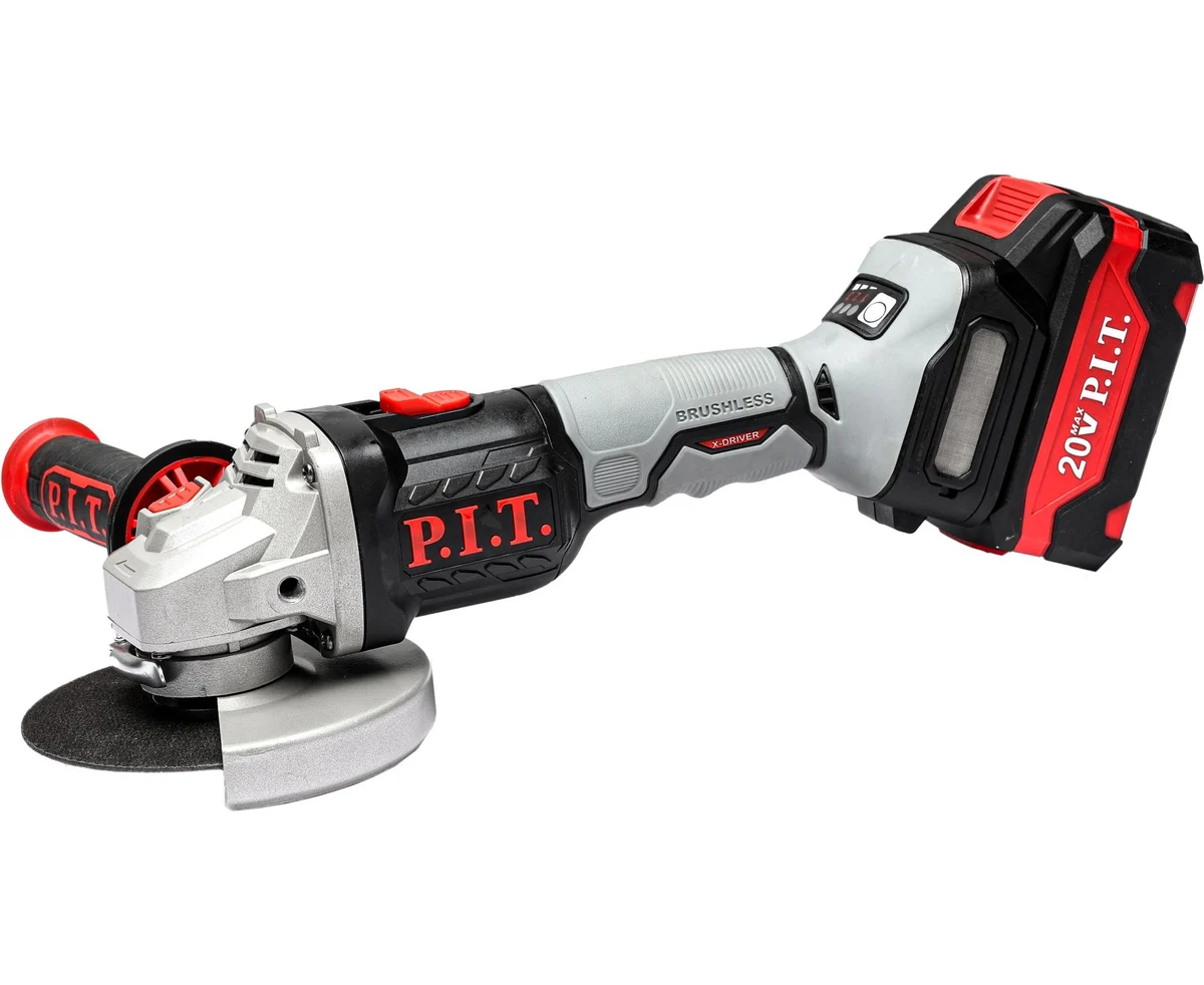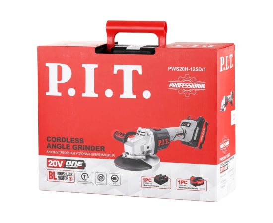 Шлифмашина угловая аккуммуляторная бесщёточная P.I.T. PWS20H-125D/1 (20В, 125мм, 3 ск, 1 акб 4,0Ач, ЗУ, кейс)