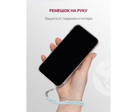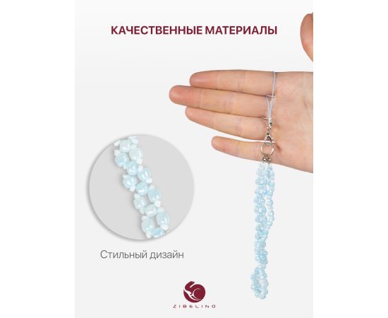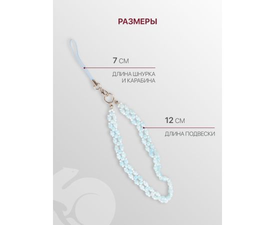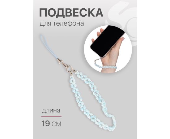 Шнурок для телефона на руку с карабином, подвеска браслет из бусин, светло-голубой