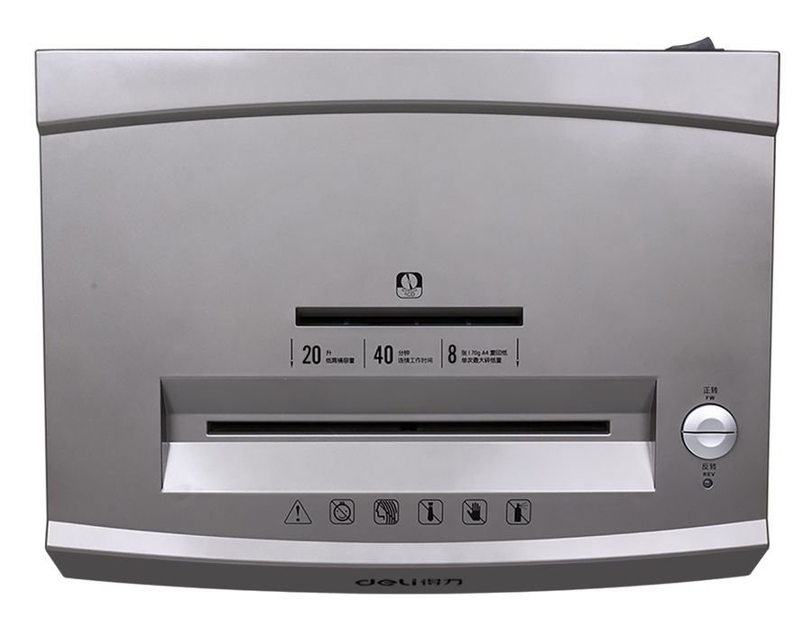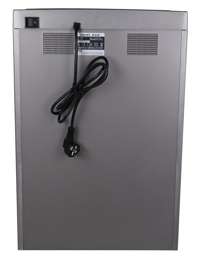 Шредер Deli 9907 серебристый с автоподачей (секр.P-4)/фрагменты/8лист./20лтр./скрепки/скобы/пл.карты/CD