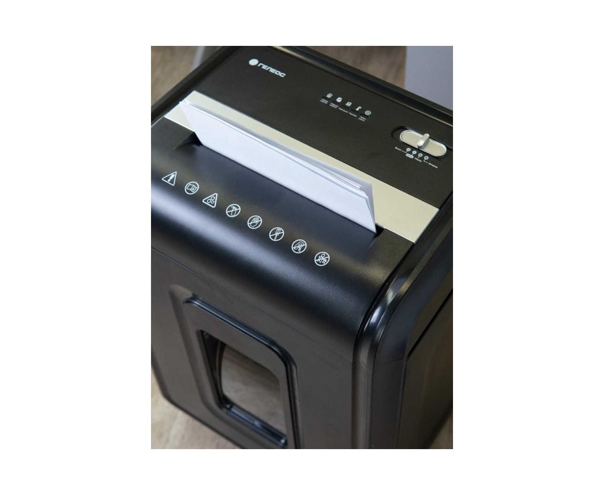 Шредер ГЕЛЕОС УМ32-4 не только уничтожает бумагу, но и без труда справляется со скобами, скрепками, CD и пластиковыми картами. Он оснащен функцией реверса, автостопа, автостарта, а также имеет защиту от перегрева. Индикаторы перегрева, наполнения корзины, а также открытой дверцы обеспечивают безопасность и удобство использования.