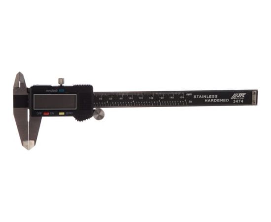 Цифровой штангенциркуль 150мм JTC-3474 обладает повышенной точностью измерений (0.01 мм). Прост и удобен в использовании. Подходит для измерения в метрической и дюймовой системах. Оснащен цифровым дисплеем, имеет функцию сброса показаний. Материалом для изготовления инструмента служит нержавеющая сталь.