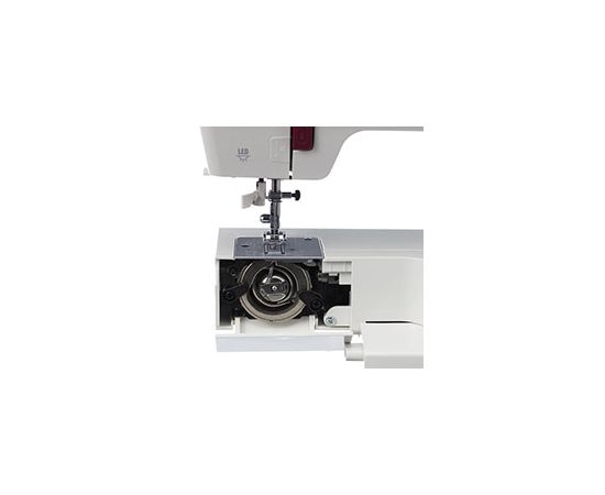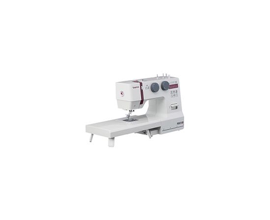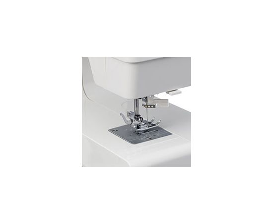 Штопальная пластина закрывает рейки нижнего транспортёра, что очень удобно для выполнения свободно-ходовой стёжки и пришивания пуговиц. В комплекте с машиной поставляются все необходимые аксессуары и расширительный столик, что делает работу с машиной еще более комфортной.