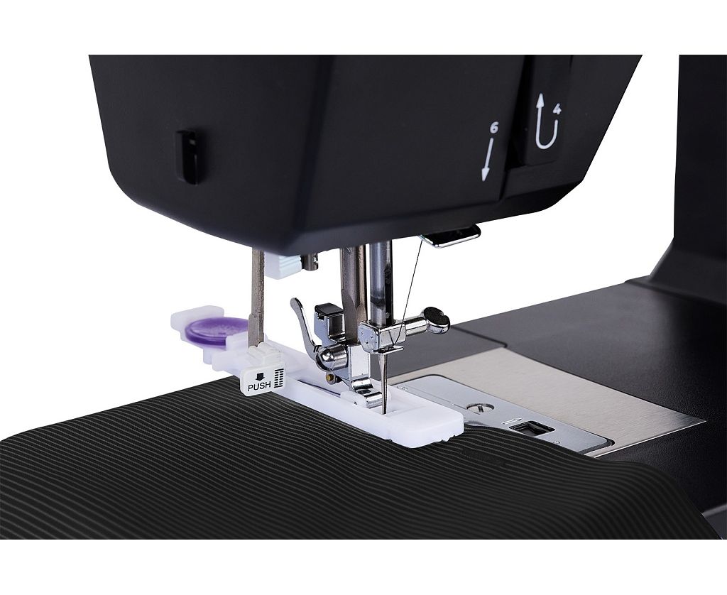 Благодаря 7-сегментной зубчатой рейке, надёжно продвигаются самые сложные эластичные ткани, прекрасно шьётся лёгкая органза.