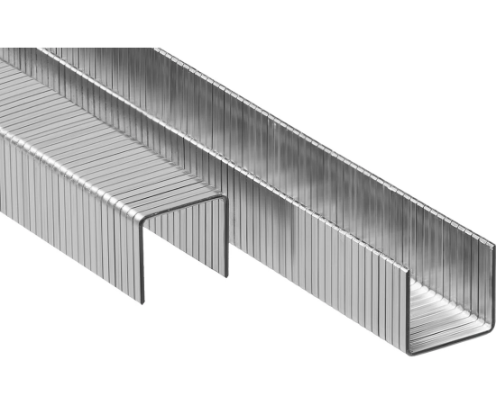 Скобы применяются для крепления разных материалов к поверхностям из фанеры, дерева, ДСП, с помощью степлера электрического или пневматического. Скоба изготовлена из закаленной проволоки, что препятствует ее изгибу во время удара. Специализированная заточка обеспечивает полное забивание скобы.