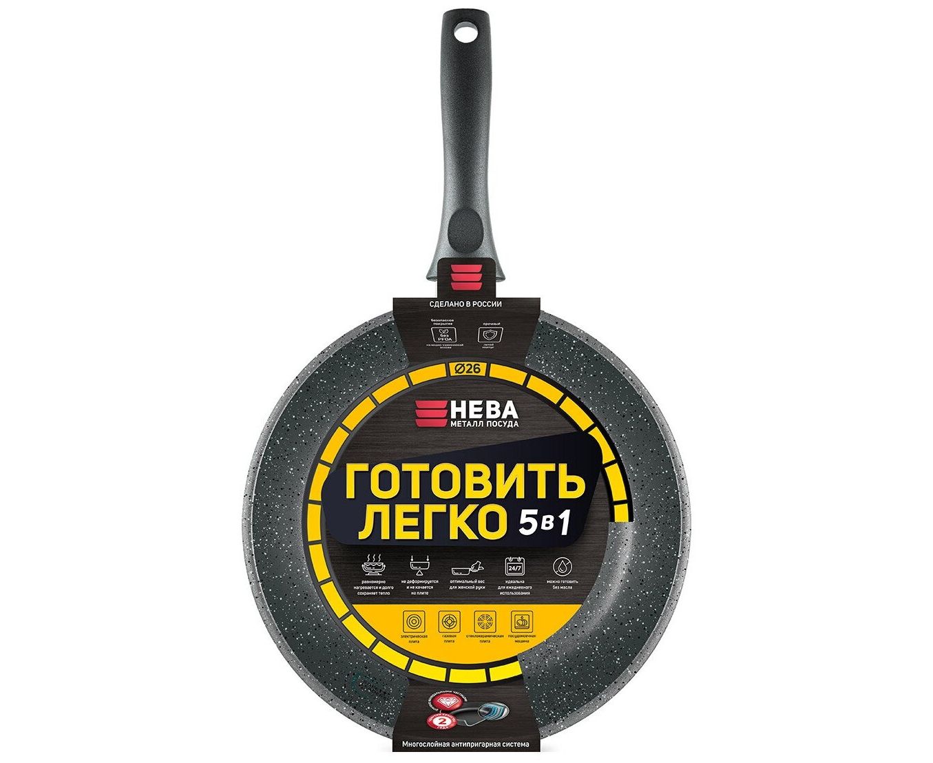 Сковорода Нева Металл Посуда GL4126 26 Готовить легко Stone Gray н/р