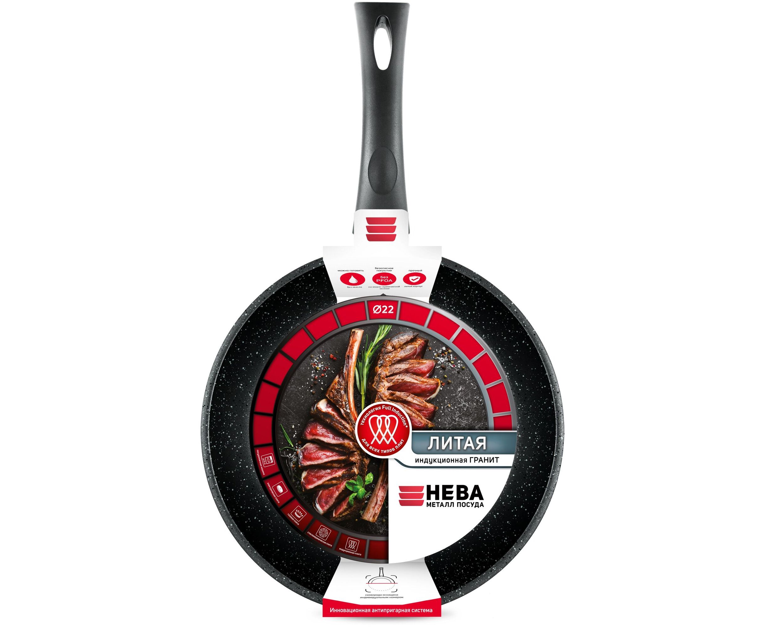 Сковорода Нева Металл Посуда Литая Индукция Гранит L18122i 550000518 а/пр 22см