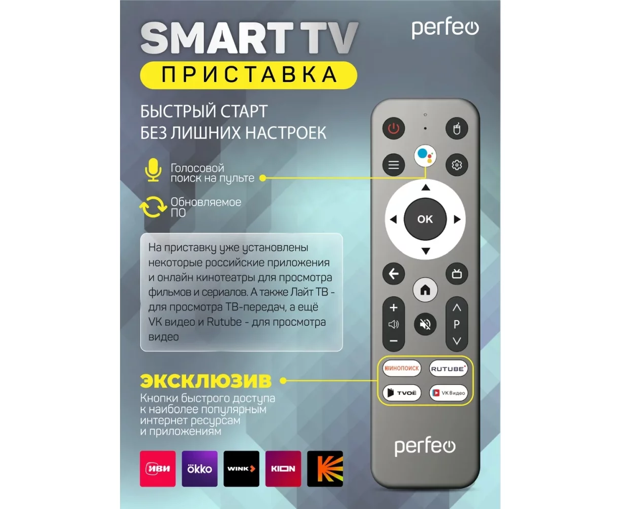 Смарт-ТВ приставки Perfeo Smart TV Box PF_A4555 Logic 2/16" Allwinner H313 Android 10, 2Gb/16Gb Пульт Bluetooth