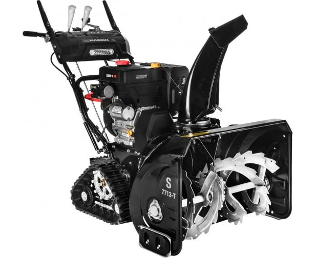 Снегоуборщик Hyundai S 7713-T перемещается при помощи гусениц, что значительно повышает проходимость и сцепление с поверхностью.
