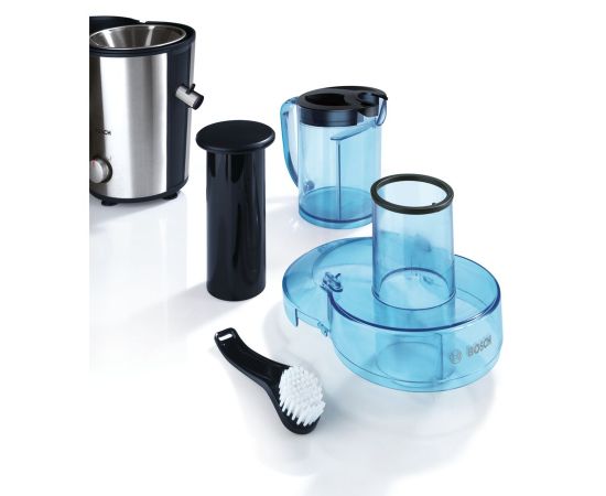 | Особенности | Подходит для большинства видов овощей и фруктов. Два режима работы для отжима твердых и мягких плодов. Высокая степень безопасности! Функция SafetyStop автоматически отключает мотор соковыжималки при открывании крышки; не позволит включить прибор, если он неправильно собран. |