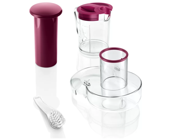 Укомплектована металлической сеточкой, щеточкой для очистки и сепаратором для пены. Сетевой шнур длиной 1.2 метра на время хранения сворачивается и убирается в специальный отсек. Наличие прорезиненных ножек владелец устройства также оценит по достоинству. Соковыжималка имеет габариты 31x31.2x18 см и вес в 5.3 килограмма, благодаря чему займет видное место на кухне и будет ее украшать.