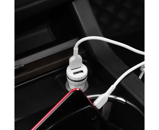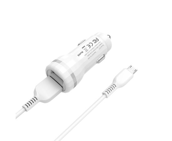 СПЕЦЦЕНА Автомобильное зарядное устройство 2USB 2.4A с кабелем micro USB HOCO Z27 (White)