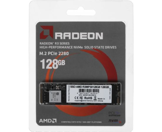 SSD AMD Radeon R3 R3MP30128G8 128ГБ, M.2 2280, PCIe 3.0 x4