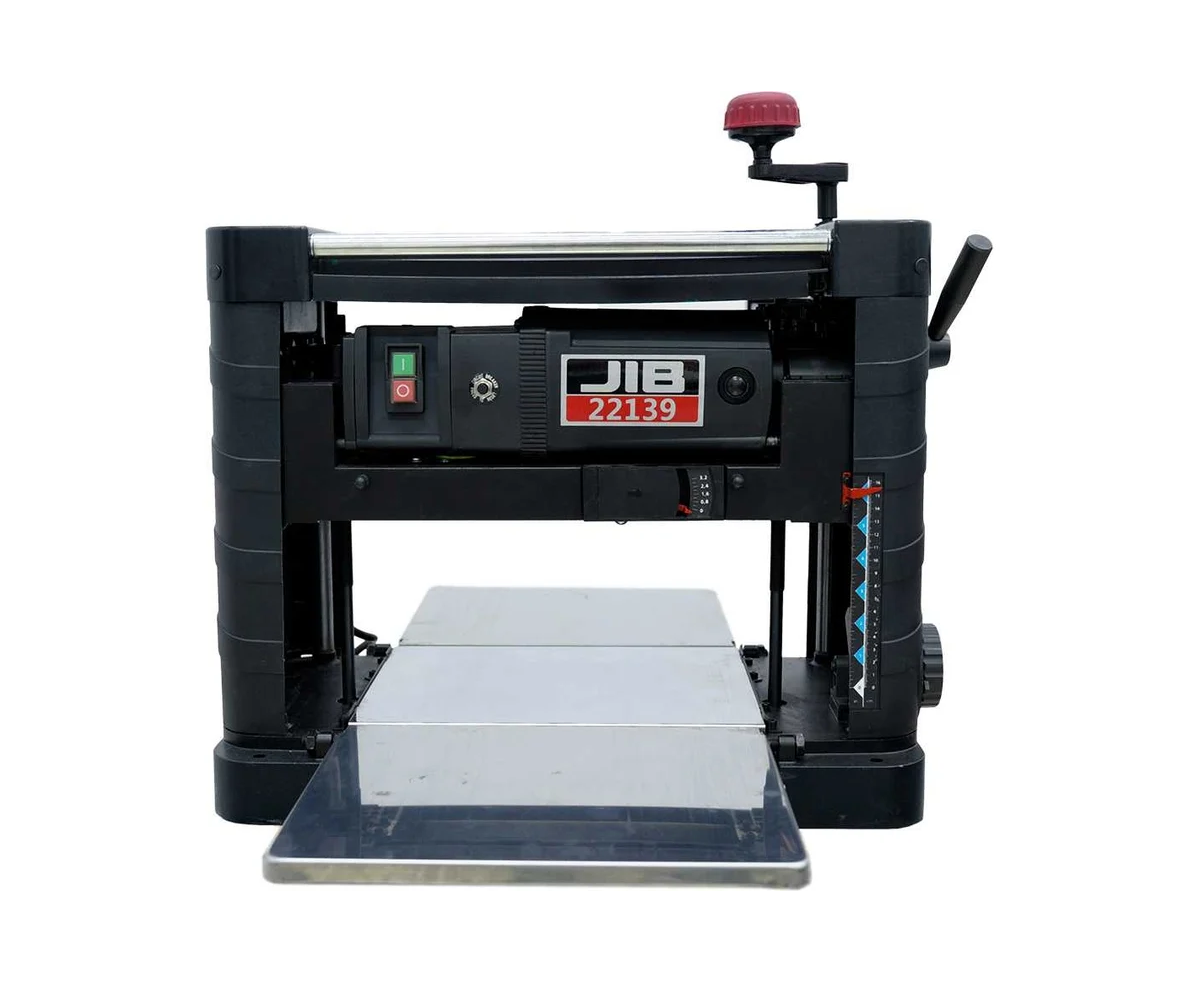 Настольный рейсмусовый станок JIB 22139 - это станок, который можно легко перемещать и быстро выполнять обработку заготовок, не испытывая недостатка в мощности двигателя. В комплектацию станка входит высококачественная режущая головка с 3 ножами для сверхгладкой обработки поверхности. Станок также оснащен двигателем мощностью 2 кВт, выдающий частоту вращения режущего вала 9000 об/мин и скорость подачи заготовки 6,7 м/ мин, возвратными роликами, установленными сверху, и рабочим из литого алюминия с накладкой из стали. Стопор фиксации режущего блока в рабочем положении устраняет люфт, что исключает образование ступеньки и обеспечивает высочайший уровень точности и стабильности в своем классе. Когтевая защита предохраняет от обратного удара заготовки. Станок оборудован встроенной системой пылеудаления с турбиной. Прочная литая конструкция обеспечивает точность работы и позволит использовать станок долгое время.