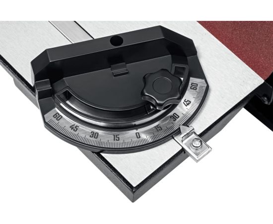 Угловой упор и фиксация угла наклона стола обеспечивают точность обработки