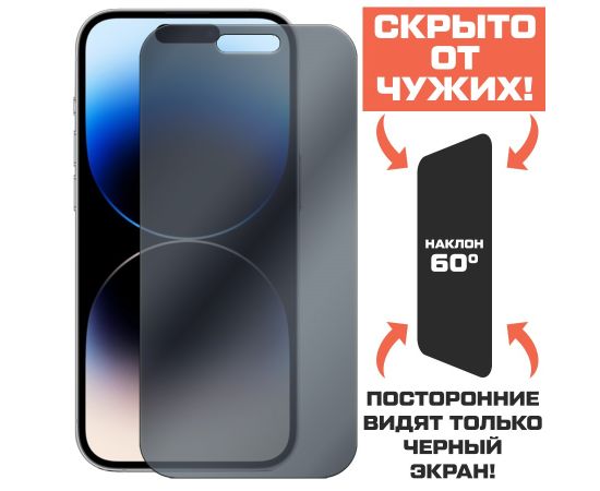 Стекло защитное гибридное Антишпион Krutoff для iPhone 14 Pro Max