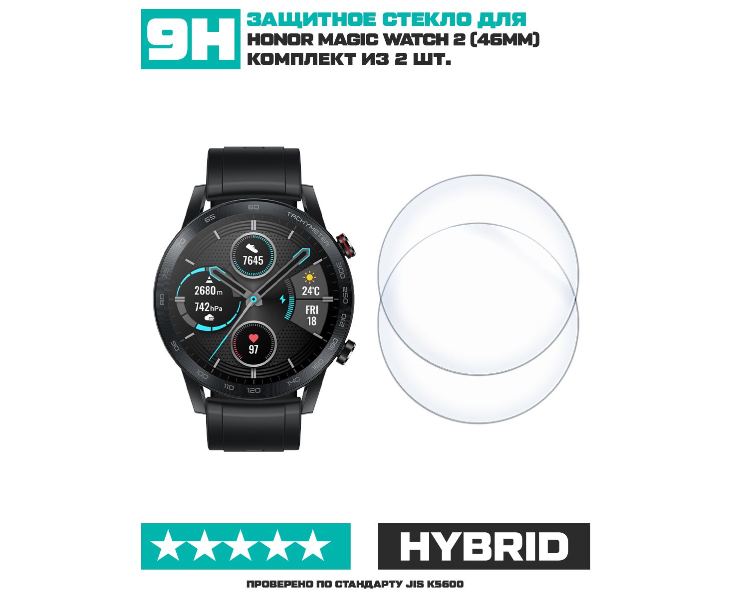 Стекло защитное гибридное для Honor Magic Watch 2 (46mm) 2 шт.
